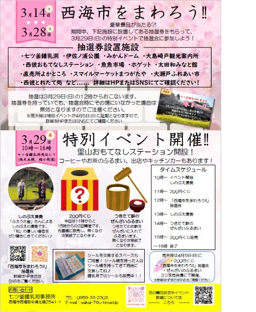 先述した「西海市をまわろう!!」の抽選を29日のイベント当日12時より、