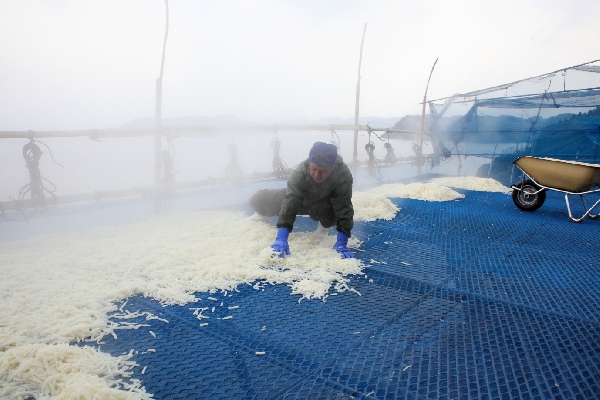 ゆでぼし大根は、西海市西海町の面高(おもだか)地区で、生産されている特産品です。短冊に切った「大栄大蔵大根」釜で、茹でた後、冬の寒風に干すことで甘くておいしい「ゆでぼし大根」が出来上がります。栄養価も高く調理がしやすいため煮物やサラダの材料としてよく使われます。