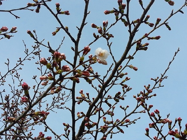 ソメイヨシノが一輪だけ咲いてるのを発見しました