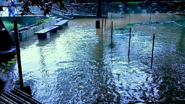 出勤したときはまだ、池の周りまで水は来ていなかったのですが、