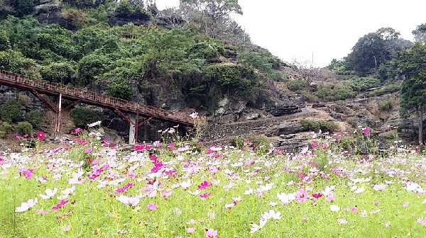 七ツ釜鍾乳洞の里山ではコスモスが見頃です。