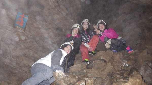 雨上がりの午後、佐賀県伊万里市から地底探検コースに参加の女性4名!