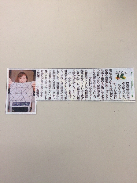 前回お知らせしました「ありがとう道の駅」の刺繍入り布の記事が昨日長崎新聞に載りました~!