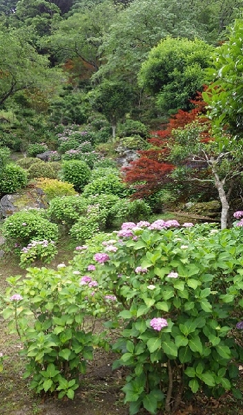 肌寒いせいか鍾乳洞のアジサイは少し遅れていますが、