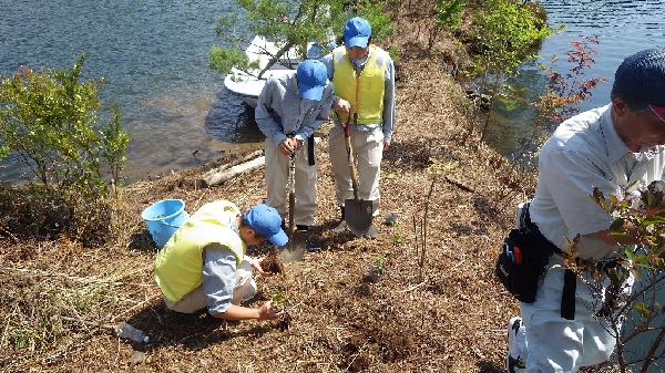 本日は、西彼農業高校 施設園芸科の3年生7名と先生2名が伊佐ノ浦公園へ来園され、かのこゆりとはまぼうの植樹をしていただきました