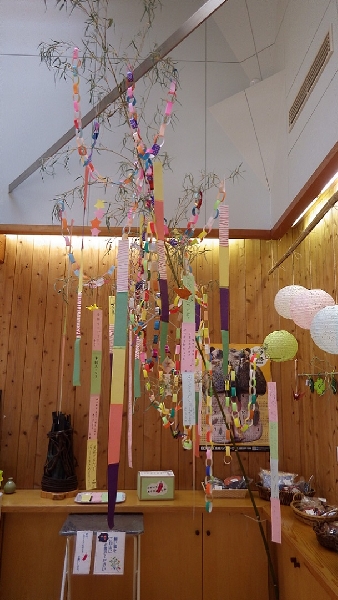 毎年店舗内に小さな笹飾りをご用意し、お客様にご協力いただいて、
