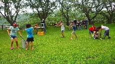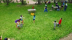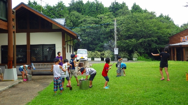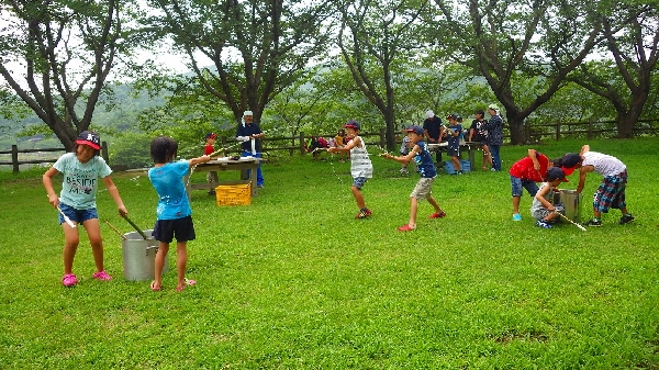 竹で作る水鉄砲は子どもたちにとっても新鮮で、出来上がった後は水のかけあいっこスタートです