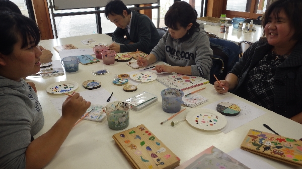 伊佐ノ浦公園では本日、トールペイント体験でコースターを作りました