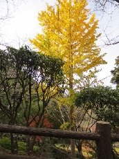 鍾乳洞のトンネルを下ると、常緑樹の中にひときわ目立つ1本の銀杏の木にたどり着きます。