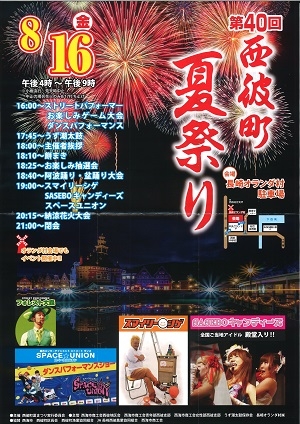 開催日:8月16日(金)、※少雨決行、荒天時中止、中止の場合花火のみ8/17打上げ