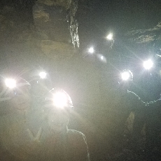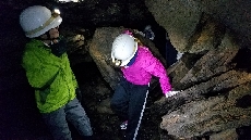 地底探検ツアーのコースは、足元を濡らしながら水路を進み、成人男性の背丈ほどの高さの滝を登り、ほふく前進しながら侵入する通路などを進むケイビング初心者向けの自然のアスレチックコースです。