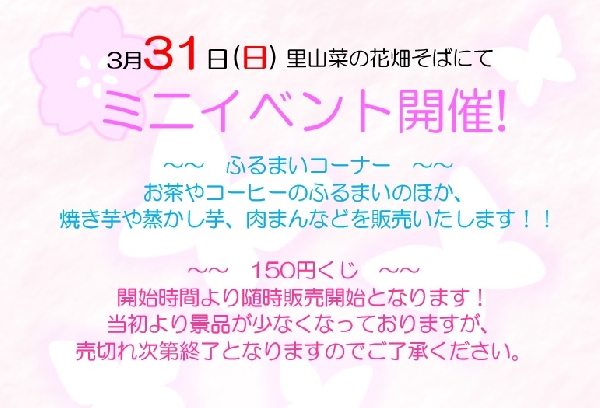 3月24日(日)の春まつりイベントは生憎の雨で中止となりましたが、その代替として