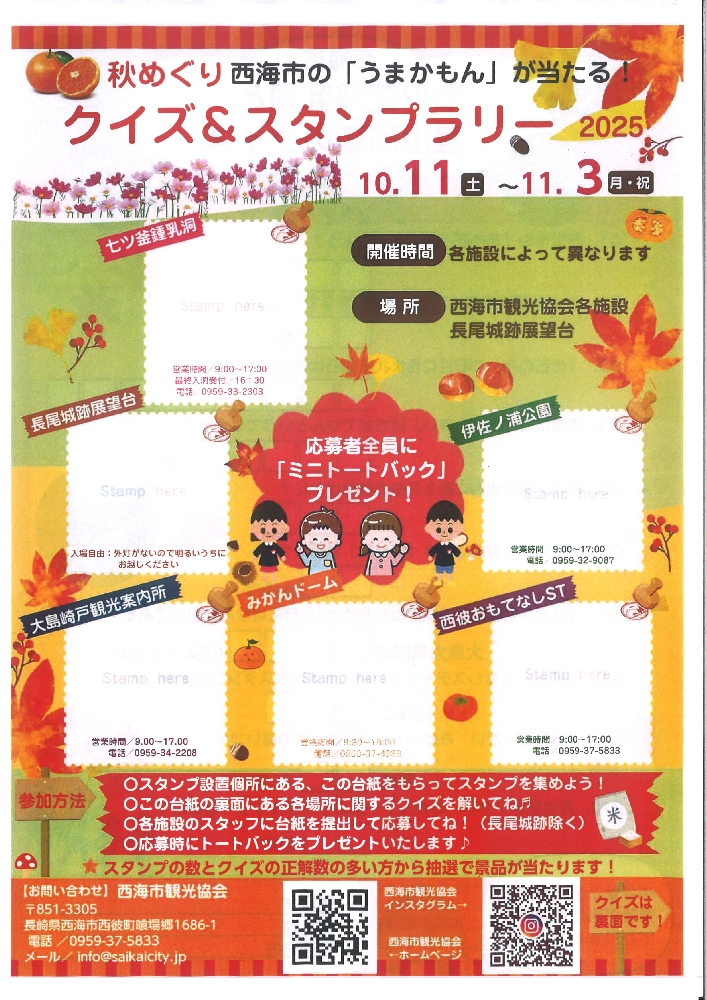 西海市のうまいもんが当たる!秋の「クイズ&スタンプラリー」を開催いたします!