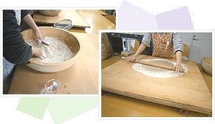 そば粉から打って試食するまでを体験します。