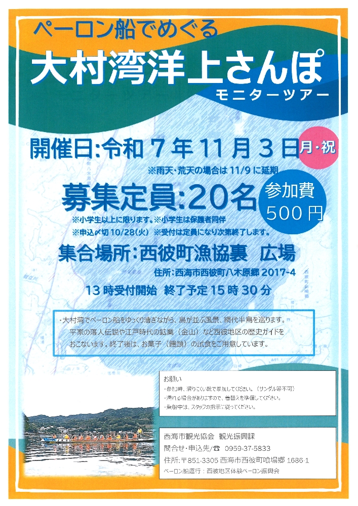 申し込み 西海市観光協会 電話0959-37-5833
